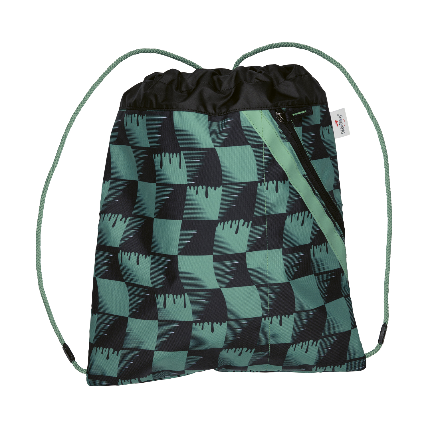 Auch kann der Sportbeutel kinderleicht an dem Schulranzen befestigt werden, so dass dieser bequem auf dem Schulranzen aufliegt.