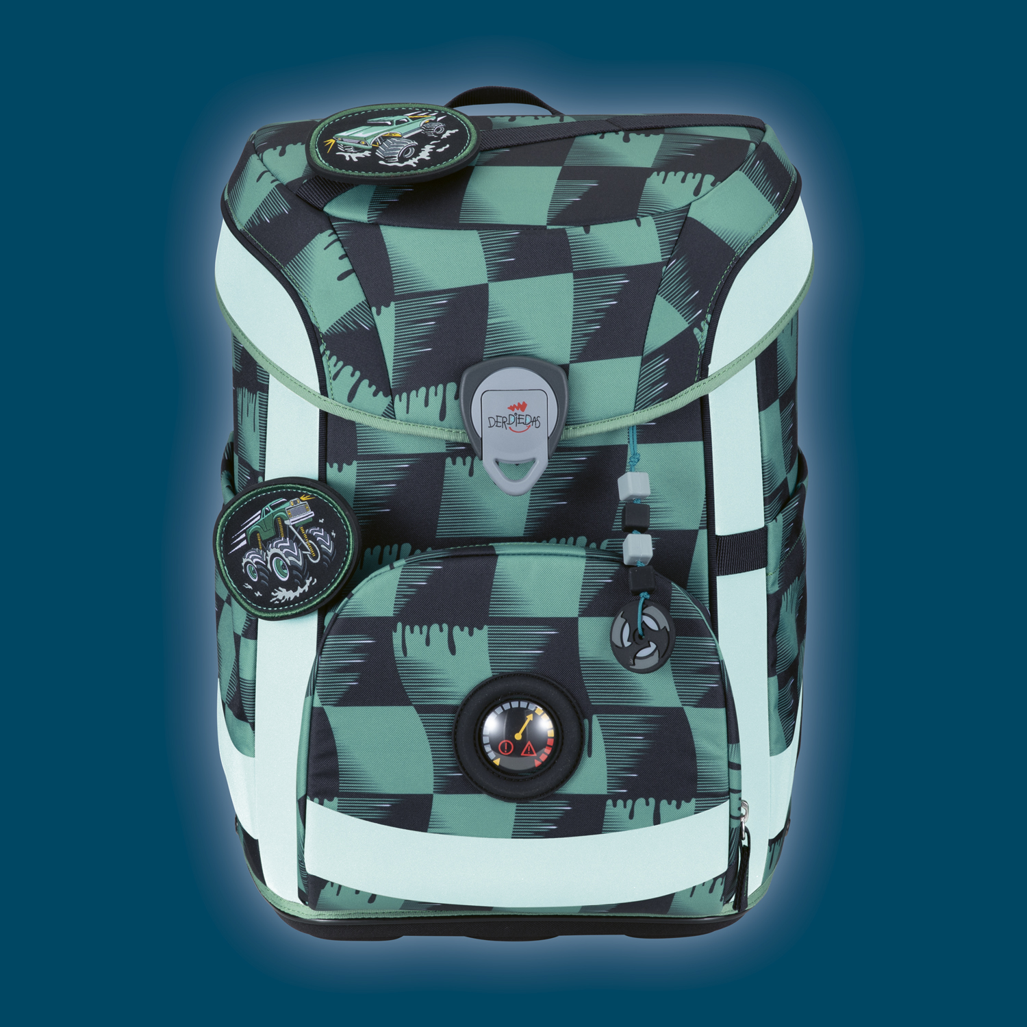 Ein Highlight sind die retroreflektierenden Flächen, die tagsüber fantastisch aussehen und in der Dunkelheit erstrahlen, sobald sie von Licht, wie z.B. Autoscheinwerfern, angeleuchtet werden. Somit ist der Ergoflex Easy Schulranzen Super Truck unübersehbar.
