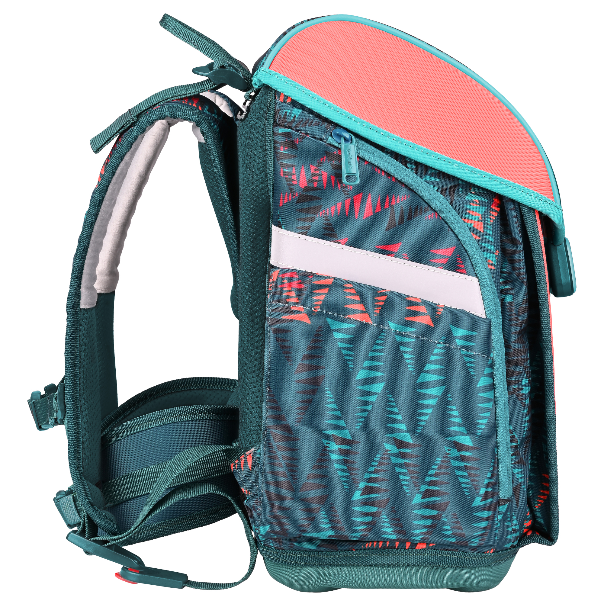 ClickFlex Rückensystem ausgestattet. Mit diesem höhenverstellbaren Tragesystem lässt sich der Schulranzen kinderlicht auf die Bedürfnisse und Körpergröße des Schulkindes anpassen. Die zusätzlichen Kompressionsgurte unterstützen obendrein den optimalen Sitz. Die