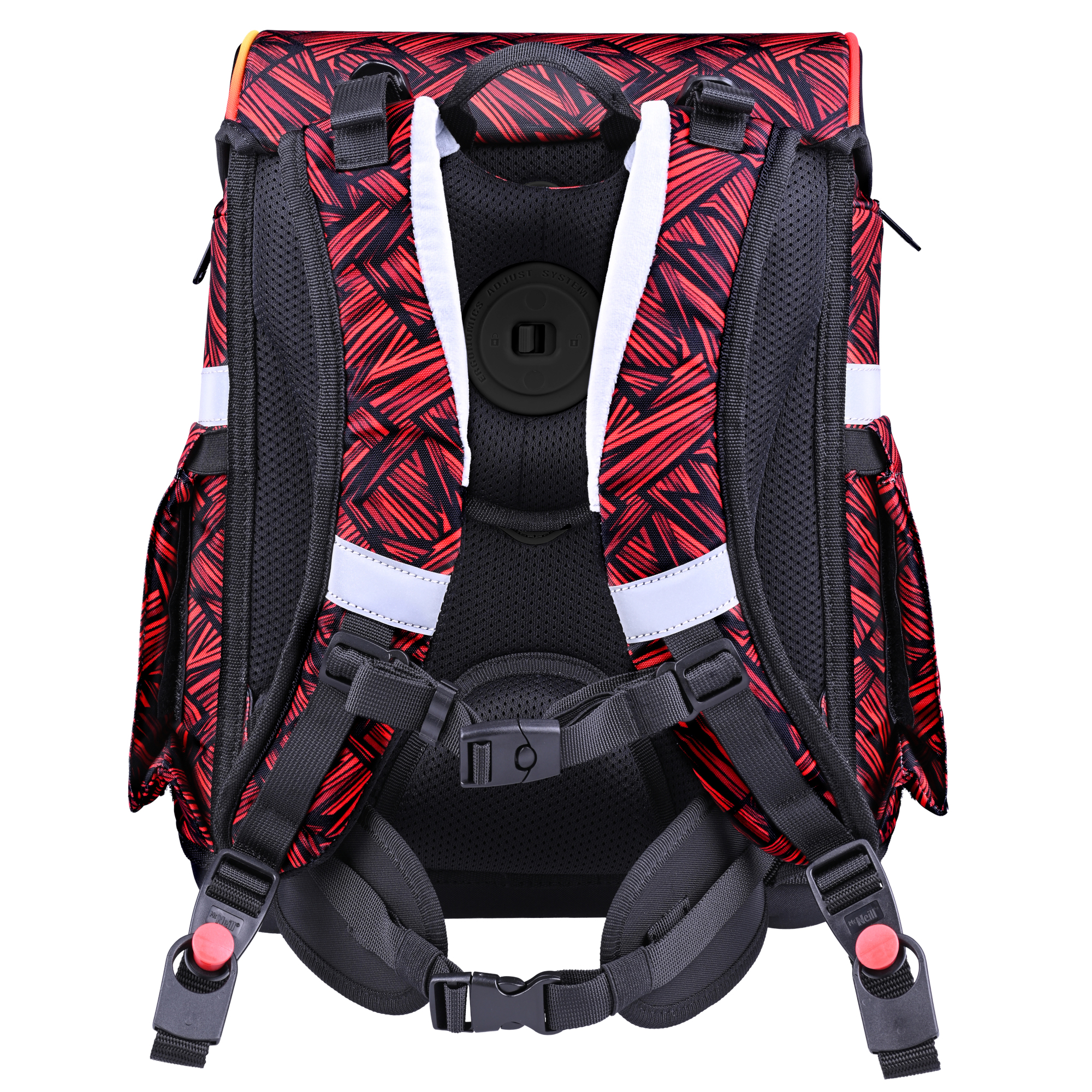 ClickFlex Rückensystem ausgestattet. Mit diesem höhenverstellbaren Tragesystem lässt sich der Schulranzen kinderlicht auf die Bedürfnisse und Körpergröße des Schulkindes anpassen. Die zusätzlichen Kompressionsgurte unterstützen obendrein den optimalen Sitz. Die