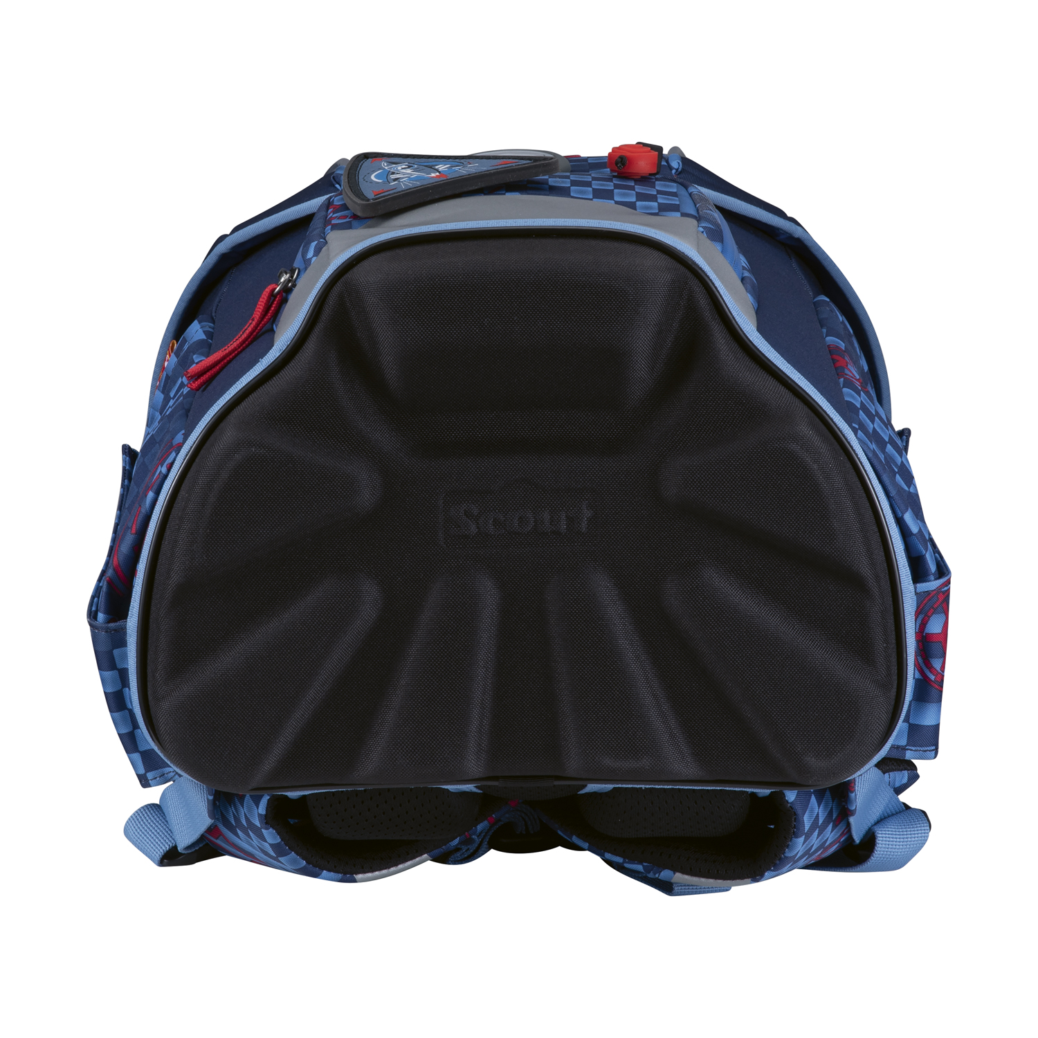 Das Magnetschloss schließt beim Zuklappen des Schulranzendeckels von selbst. Zudem ist es leicht bedienbar und ermöglicht ein kinderleichtes Öffnen des Schulranzens. Der Innenraum ist geräumig und verfügt über viele Fächer, dies ermöglicht eine optimale Organisation sowie ein rückenfreundliches Bepackendes Schulranzens. Der weit zu öffnende Ranzendeckel bietet eine optimale Übersicht für ein bequemes Ein- und Auspacken des Scout Micro Schulranzens. Auch gibt es ein zusätzliches Innenfach für das Etui. Zur Unterstützung einer optimalen Lastenverteilung sollte zusätzlich darauf geachtet werden, dass die Bücher stets in Rückennähe platziert werden. Dafür ist im Scout Schulranzen ein separates Bücherfach vorgesehen.