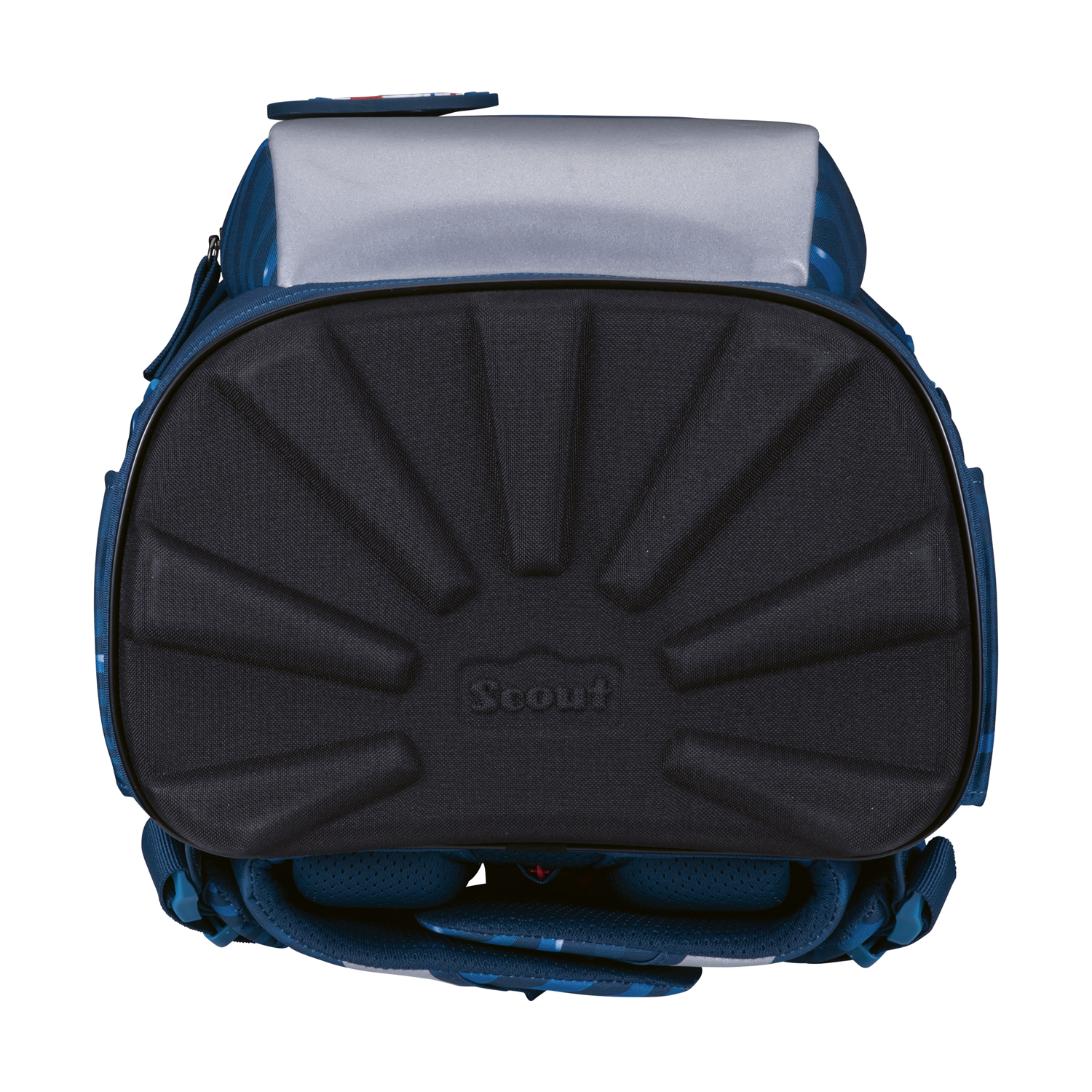 Das superleicht zu bedienende Magnetschloss ermöglicht ein kinderleichtes Öffnen des Schulranzens, welches sich beim Zuklappen des Schulranzendeckel von selbst verschließt. Der geräumige Innenraum verfügt über viele Fächer, welches ein rückenfreundliches Bepacken ermöglicht. Der weit zu öffnende Ranzendeckel sorgt für eine optimale Übersicht und ein einfaches Ein- und Auspacken des Scout Neo Schulranzens. Dies sorgt für eine optimale Organisation. Auch sind im Deckel Gummibänder angebracht, die zur Befestigung des z.B. Etuis dienen. Zur Unterstützung einer optimalen Lastenverteilung sollte zusätzlich darauf geachtet werden, dass die Bücher stets in Rückennähe platziert werden. Dafür ist im Scout Schulranzen ein separates Bücherfach vorgesehen.