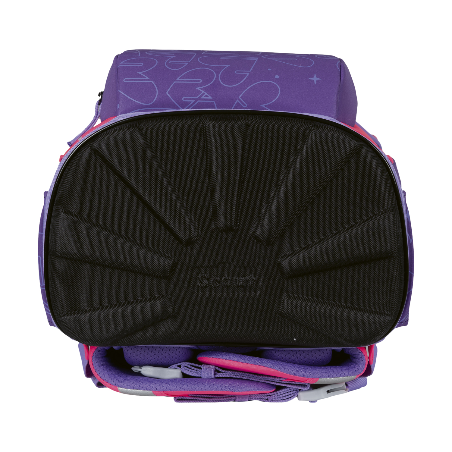 Das superleicht zu bedienende Magnetschloss ermöglicht ein kinderleichtes Öffnen des Schulranzens, welches sich beim Zuklappen des Schulranzendeckel von selbst verschließt. Der geräumige Innenraum verfügt über viele Fächer, welches ein rückenfreundliches Bepacken ermöglicht. Der weit zu öffnende Ranzendeckel sorgt für eine optimale Übersicht und ein einfaches Ein- und Auspacken des Scout Neo Schulranzens. Dies sorgt für eine optimale Organisation. Auch sind im Deckel Gummibänder angebracht, die zur Befestigung des z.B. Etuis dienen. Zur Unterstützung einer optimalen Lastenverteilung sollte zusätzlich darauf geachtet werden, dass die Bücher stets in Rückennähe platziert werden. Dafür ist im Scout Schulranzen ein separates Bücherfach vorgesehen.