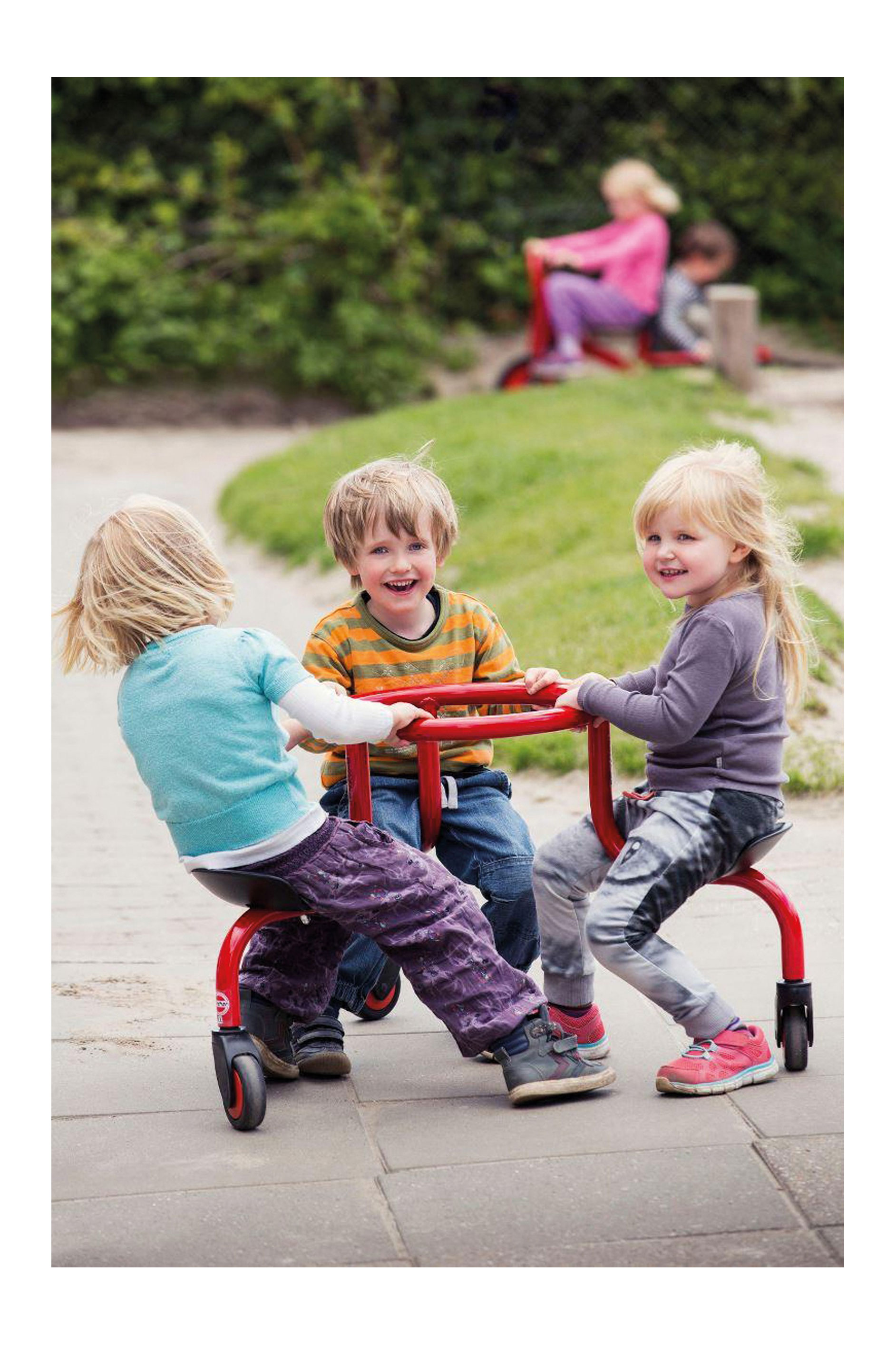 Dieses Circle Bike von Viking ist ideal für Kindergärten, Kindertagesstätte, Schulen, etc., aber selbstverständlich auch für den Nachwuchs im Privatbereich geeignet. Der Spielanreiz ist riesig, da die Koordinationsfähigkeit und das Zusammenspiel der Kinder herausgefordert wird und diese stärkt, da alle Räder in alle Richtungen rollen können. Es ist aufgrund seiner maximalen Stabilität und hohen Qualität sehr langlebig. Ein schönes und sicheres Design zeichnnet die Winther Viking Fahrzeuge aus.